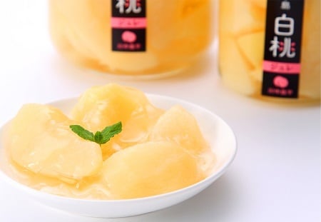 桃は生ハム&オリーブオイルとの相性が大変良いので、アミューズとしてこの季節お楽しみ頂けます。作り方は簡単!瓶から桃を取り出して生ハムに巻き、オリーブオイルをかけてお好みでジュレをトッピングして頂くだけ!!
